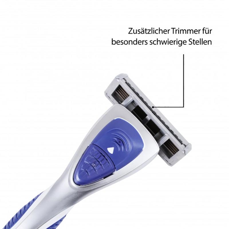 Mit Hilfe der Trimmer-Klinge können auch schwierige Stellen präzise rasiert werden.
