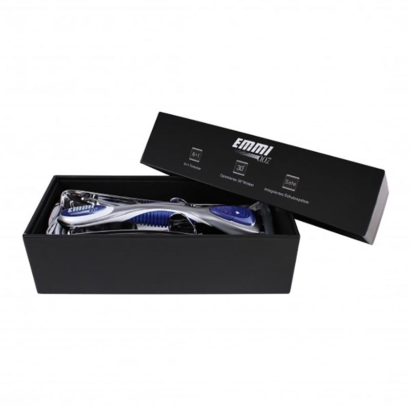 Die Emmi-0.0.7. 6 + 1 Klingenrevolution bietet Ihnen den Komfort von 6 Klingen und die Präzision von 1 Trimmer-Klinge. Die 6 eng aneinander liegenden Klingen des fortschrittlichen Rasiersystems reduzieren den Druck auf die Haut und ermöglichen eine besonders gründliche und komfortable Rasur.